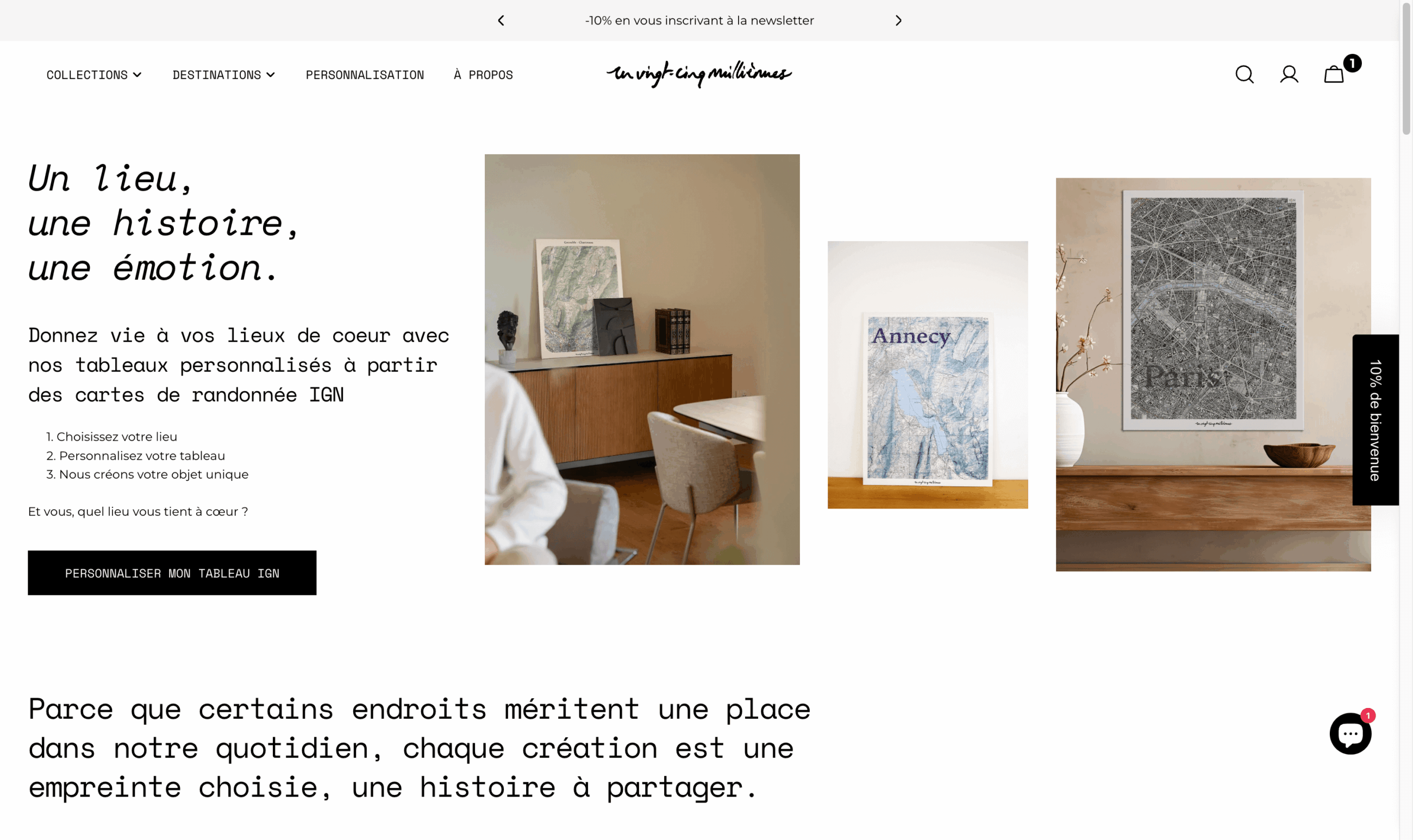Un Vingt-cinq Millièmes – Création site e-commerce Shopify